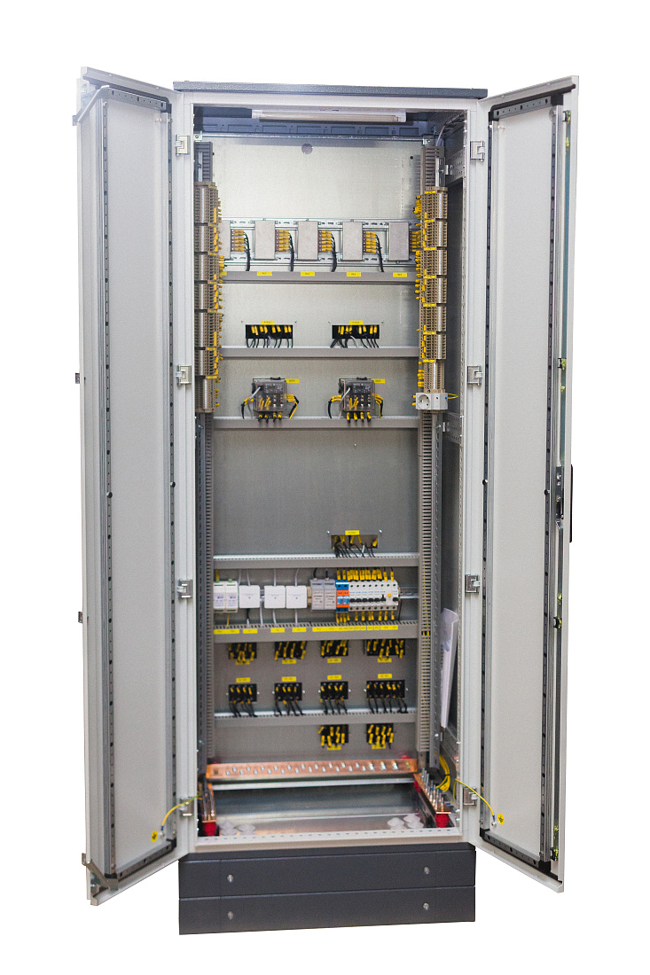 Шкаф комплектный низковольтный для автоматизации электрических сетей и РЗА серии НКУ-АЭС (в дальнейшем шкаф), предназначен для защиты и управления силового электротехнического оборудования 0,4кВ, 6-10кВ, 35кВ, 110кВ. Шкаф является стационарным изделием внутренней установки. Шкаф НКУ-АЭС размещается в помещениях ТП, ЗРУ, КРУ, ОПУ электрических станций и подстанций.Шкаф предназначен для эксплуатации на высоте над уровнем моря не более 1000 м в атмосфере типа I по ГОСТ 15150.