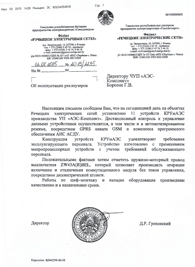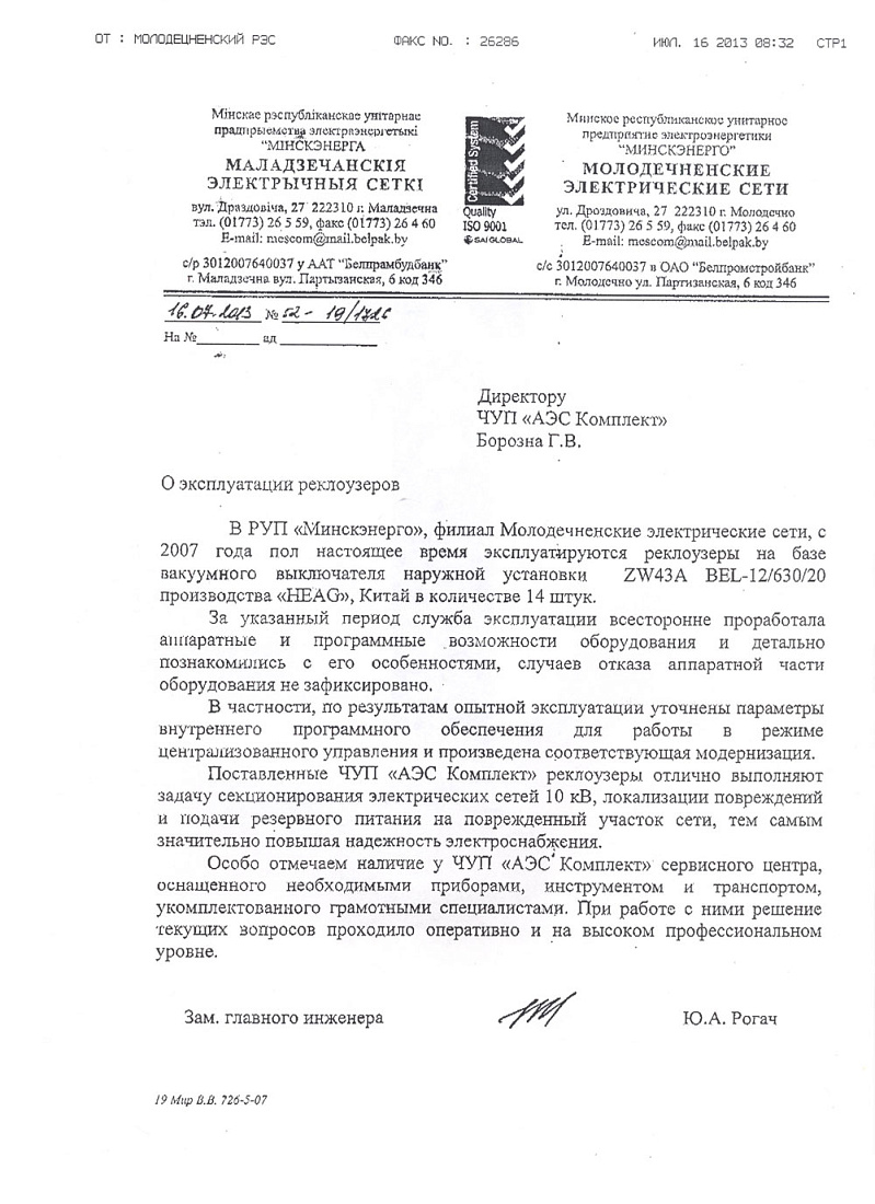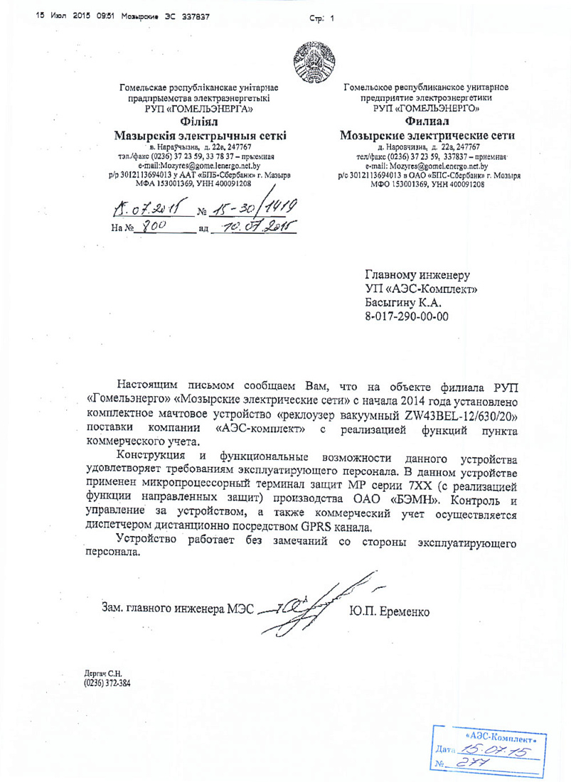 - KRUmAES — I /6(10) — switchgear «vacuum recloser», based on module КМ-I with vacuum circuit breaker ZW43ABEL-12, provides switching of load overcurrents and short circuit currents;